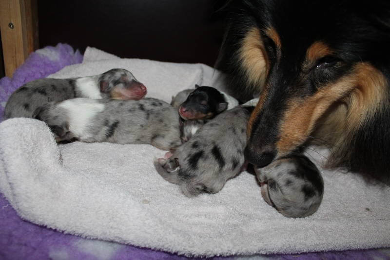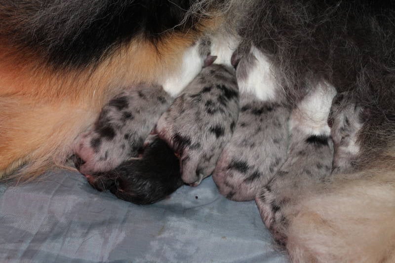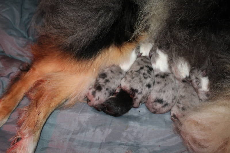 Hoera de pups van Fridens Charles de Gaulle (Shiko) en Milton Falls I Will Survive (Unique) zijn geboren op 01-04-2018. er zijn 3 blue merle teefjes, 2 blue merle reutjes en 1 tricolour reutje geboren. Moeder en pups maken het uitstekend. Wij zijn waanzinnig blij en trots op dit prachtige nestje.